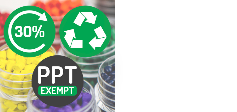 Our printed carrier bag prices are the lowest online, starting from as little as 6p a bag. The bags are made with a minimum of 30% recycled content, so they're better for the environment and are exempt from the Plastic Packaging Tax (PPT). They are also fully recyclable.