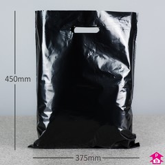 375mm wide x 450mm high x 30 micron thickness, 75mm bottom gusset