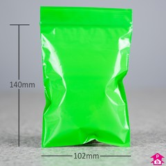 Green grip seal bags. A range of re-usable self-sealing bags from small up to A4 size all in a fresh and glossy green. Ideal for colour-coded storage.